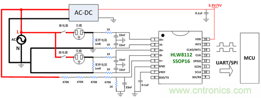 圖5  HLW8112的2通道測量應(yīng)用電路
