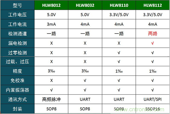 三、HLW8012/HLW8032/HLW8110/HLW8112對比表