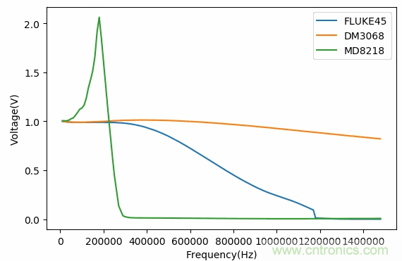 不同數(shù)字萬(wàn)用表的頻率曲線