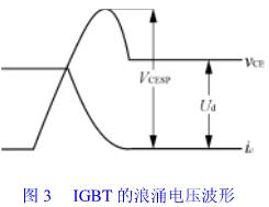 圖中:VCE為IGBT集電極-發射極間的電壓波形;ic為IGBT的集電極電流;Ud為輸入IGBT的直流電壓;VCESP=Ud+Ldic/dt,為浪涌電壓峰值。
