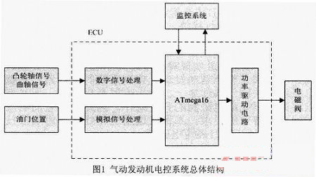 氣動發(fā)動機(jī)電控系統(tǒng)的設(shè)計要從系統(tǒng)檢測和控制功能的需求出發(fā),按以下要求進(jìn)行設(shè)計:選擇適當(dāng)?shù)男盘柌杉绞?,選用合理的傳感器,準(zhǔn)確地反映發(fā)動機(jī)各狀態(tài)參數(shù);選用合適的控制芯片,采用低功耗高性能的元器件,簡化電路,提高控制精度;采用模塊化設(shè)計方法;系統(tǒng)具有抗振動和抗干擾性能;驅(qū)動模塊具有良好的可靠性和負(fù)載能力;適應(yīng)車載發(fā)動機(jī)實(shí)際工作環(huán)境。