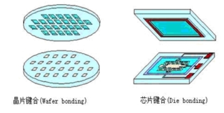 晶片鍵合(Wafer bonding)技術(shù)是指芯片結(jié)構(gòu)和電路的制作、封裝都在晶片(Wafer)上進(jìn)行,封裝完成后再進(jìn)行切割,形成單個(gè)的芯片(Chip);與之相對應(yīng)的芯片鍵合(Die bonding)是指芯片結(jié)構(gòu)和電路在晶片上完成后,即進(jìn)行切割形成芯片(Die),然后對單個(gè)芯片進(jìn)行封裝(類似現(xiàn)在的LED封裝工藝),如圖6所示。很明顯,晶片鍵合封裝的效率和質(zhì)量更高。由于封裝費(fèi)用在LED器件制造成本中占了很大比例,因此,改變現(xiàn)有的LED封裝形式(從芯片鍵合到晶片鍵合),將大大降低封裝制造成本。此外,晶片鍵合封裝還可以提高LED器件生產(chǎn)的潔凈度,防止鍵合前的劃片、分片工藝對器件結(jié)構(gòu)的破壞,提高封裝成品率和可靠性,因而是一種降低封裝成本的有效手段。