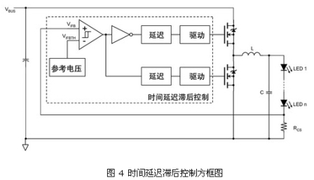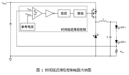 接地參考的傳感電阻簡化了電流傳感電路,但在降壓轉換器中需要高壓驅動電路。要避免使用隔離變壓器,在設計中必須選擇高邊檢測和低電壓驅動電路,或者低邊檢測和高壓驅動電路。實現后者的一種有效方法是,采用有時間延遲滯后控制的高壓降壓驅動電路(見圖 1)。