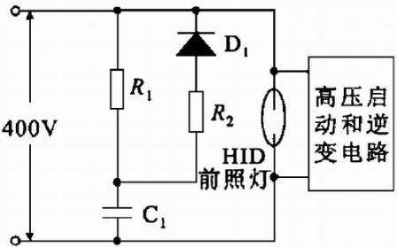 啟動期間,電子鎮(zhèn)流器要經(jīng)歷高壓擊穿、電流接續(xù)、預(yù)熱維弧3個階段。高壓啟動電路是HID 前照燈能否瞬間點(diǎn)亮的基礎(chǔ)。但輝光放電后慣性和濾波延遲使直流變換器和檢測回路很難有較快的響應(yīng)速度,所以需要如圖1所示的電流接續(xù)(take-over) 電路,它可利用電容預(yù)先儲存的能量為燈提供一個較大的瞬間電流(約300ms) ,保證輝弧可靠過渡。一般高壓發(fā)生電路有以下幾種: