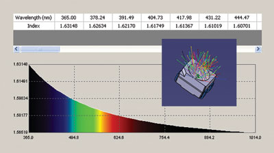 圖3 仿真軟件用于顯示LED的精確光譜以及光輻射方向