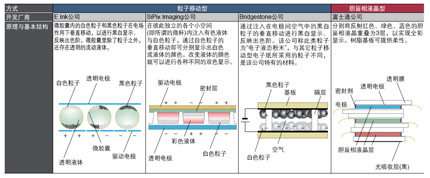 具體來說,日本Bridgestone公司與美國SiPix Imaging公司等多家廠商已經開始為電子書閱讀器提供電子紙。美國初創企業Pixel Qi公司也開始提供具有專門設計的電子紙顯示模式的液晶顯示屏。