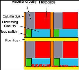 在第一點『感光度差異』中,由于CMOS每個畫素的結(jié)構(gòu)比CCD復(fù)雜,其感光開口不及CCD大,相對比較相同尺寸的CCD與CMOS感光器時,CCD感光器的解析度通常會優(yōu)于CMOS。不過,如果跳脫尺寸限制,目前業(yè)界的CMOS感光原件已經(jīng)可達(dá)到1400萬畫素/全片幅的設(shè)計,CMOS技術(shù)在量率上的優(yōu)勢可以克服大尺寸感光原件制造上的困難,特別是全片幅24mm-by-36mm這樣的大小。