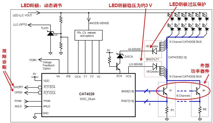 圖6.基于安森美半導體CAT4026的大尺寸LED背光液晶電視多通道線性側光方案