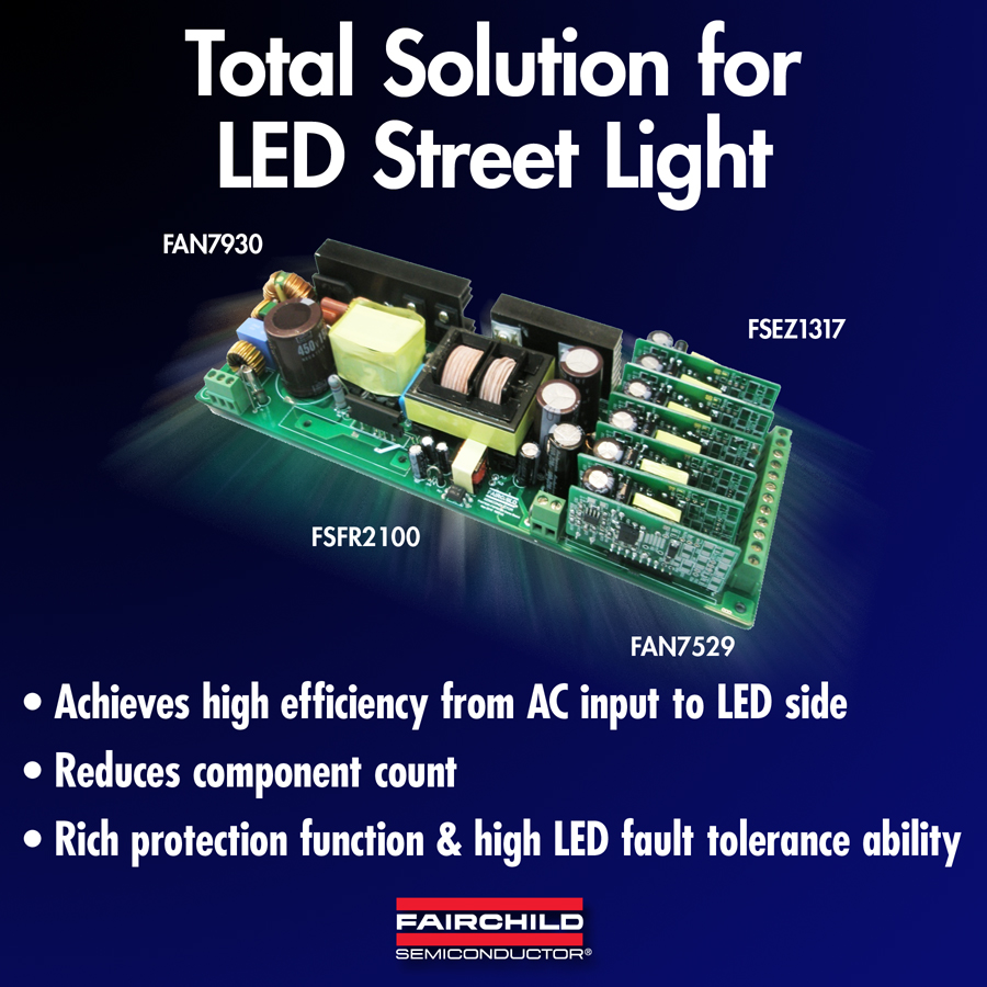 - 飛兆半導體公司開發(fā)出一款完整的LED路燈照明解決方案