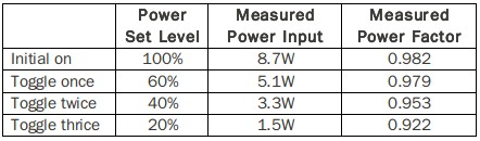 表三、EZDimming四段調(diào)光準位的功因