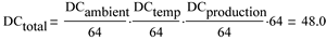 從上可見,運用48的組合點校正值即可得到56mcd的期望亮度。請注意,由于溫度引起亮度下降,故本計算中的起始電流被設置為起始生產電流的90%。