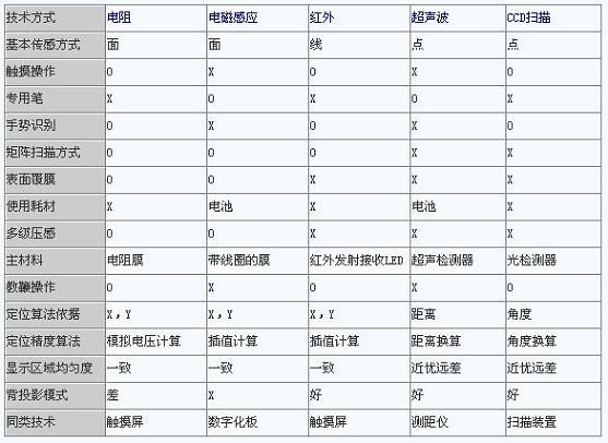 綜上所述,交互式電子白板采用不同的定位方式,則會有不同的特點(diǎn)和性能。下表將上面的文字內(nèi)容進(jìn)行總結(jié)和對比,相信讀者能分清各種技術(shù)的差異,選擇適合自己的一款產(chǎn)品。