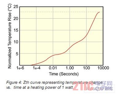 在電子行業,術語“Z”代表阻抗,在我們的例子中代表熱阻抗。在熱阻抗的曲線中,其表示溫差除以熱功耗的值。因此,圖4中的Z曲線表述了對于1W熱功耗的溫度改變。