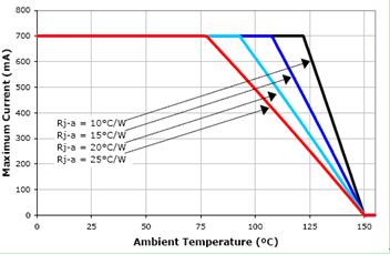 圖3 Cree 3WXLampXP-E最大注入電流與結(jié)溫的關(guān)系