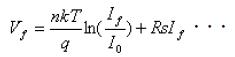 式中,Vf為正向電壓,If為正向電流,I0為反向飽和電流,q為電子電荷,k是玻爾茲曼常數(shù),Rs是串聯(lián)電阻,n是表征P/N結(jié)完美性的一個(gè)參量,處在1~2之間。式(3)的右邊只有反向飽和電流I0與溫度密切相關(guān),I0值隨結(jié)溫的升高而增大,導(dǎo)致正向電壓Vf值的下降。實(shí)驗(yàn)指出,在輸入電流恒定的情況下,對于一個(gè)確定的LED器件,兩端的正向壓降與溫度的關(guān)系可由式(4)表示: