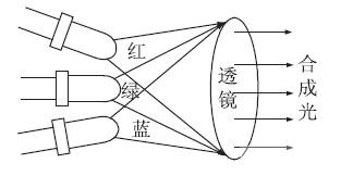 通過控制電路對三基色發(fā)光LED 的亮度進行調(diào)節(jié),其通過透鏡后的合成光的顏色和亮度均將可調(diào)。