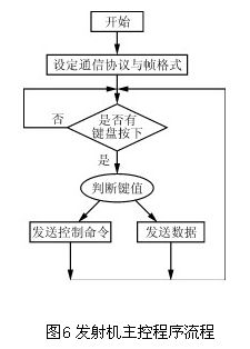 發射機主控軟件的功能是通過串行口接收上位PC機發送來的圖像點陣,讀取鍵盤命令,并向編碼器串行發送操作命令或顯示數據。