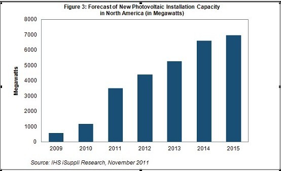 據(jù)IHS iSuppli公司的北美光伏市場(chǎng)報(bào)告,美國(guó)加州的許多太陽能項(xiàng)目經(jīng)過多年開發(fā)之后終于投產(chǎn),預(yù)計(jì)2011年北美的光伏(PV)太陽能系統(tǒng)安裝容量將大增200%。