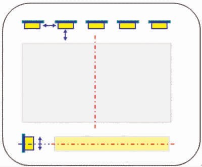 對背光的合理設計可以提高LED的利用效率。影響LED利用效率的結構參數主要有3個:LED之間的距離;LED發光面到LGP入光面之間的距離;LED發光面和LGP入光面兩者的垂直距離。如圖3所示。只有將三者綜合考慮才能最大化LED的利用效率,從而降低功耗。