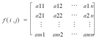 假設(shè)該數(shù)組的元素為:aij , 表示某矩形區(qū)域單位面積的照度值。并假設(shè)該數(shù)組為: m ×n (即m行n 列) 。f ( i , j) 稱為照度矩陣: