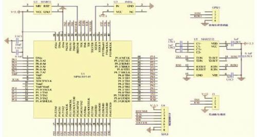 數據處理與無線數傳電路設計主要包括主控制器電路、傾角傳感器接口電路、無線數傳模塊接口電路、電源電路等。基本工作原理是:系統通上電后,主控制器控制傾角傳感器按固定間隔檢測火箭炮車體姿態,將接收到的檢測結果運算處理,計算每個千斤頂的調整量,再通過無線數傳模塊發送給操縱指示器。