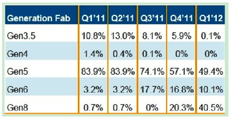 友達(dá)、新奇美、京東方、華映和瀚宇等廠商計(jì)劃于 2012年將更多資源投入到生產(chǎn)平板電腦面板上。盡管五代線和更低世代線主要以生產(chǎn)小筆電和平板電腦面板為主,但到 2012年第一季,預(yù)期有超過一半的小筆電和平板電腦面板將放在六代線和八代線上生產(chǎn)。