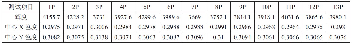 本文所設計的筆記本電腦用LED 背光組件光源采用白光LED,組裝后的LED 背光源利用BM- 7 進行13 點測試,5 點平均輝度為4,019nit ,亮度均齊性為85.33% ,色彩還原性達到95% @CIE 1976.背光源整體功率為3.2W,其中LED 功耗為2.69W.背光系統的驅動電路簡單,電流一致性良好。表1 所示為背光源的光學測試數據。