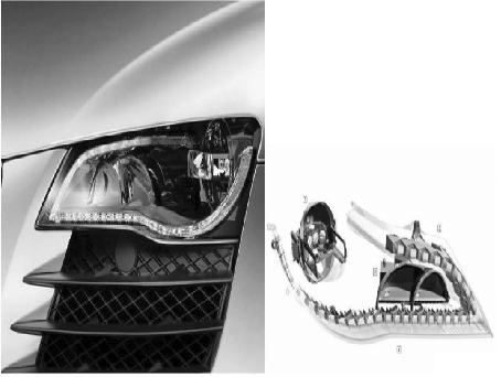 因此,為提高行車安全,越來越多的新技術(shù)被逐漸應用到汽車燈具中,如側(cè)轉(zhuǎn)向燈的光纖傳導技術(shù)、前照燈AFS 技術(shù)等。當然,這其中也包括發(fā)光二極管技術(shù)( Light Emitting Diode,簡稱LED) 在汽車燈具尤其是在汽車前照燈上的應用。近幾年的汽車設(shè)計中,LED 車燈的使用越來越多,給汽車外觀增加現(xiàn)代感的同時,也為更多人所熟悉,并引領(lǐng)當今汽車燈具發(fā)展的潮流和方向。