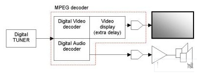 由于用于顯示的視頻信號(hào)處理越來越復(fù)雜,輸入和顯示器之間的視頻延時(shí)也越來越長(zhǎng)。這就要求電視機(jī)能延時(shí)音頻信號(hào),使之與視頻信號(hào)保持同步。