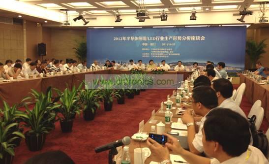 由中國半導體照明/LED產業與應用聯盟主辦、三安光電股份有限公司承辦的“2012年全國半導體照明/LED行業生產形勢座談會”8月31日在廈門召開。工業和信息化部消費品工業司、電子信息司、福建省信息化局、廈門市經濟發展局有關領導以及全國照明和LED領域60多家企業負責人、中國照明電器協會、中國光學光電子行業協會、福建省光電子行業協會、廈門市光電子行業協會等相關行業組織出席座談會。