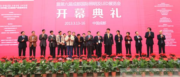大會開幕式由成都德納展覽有限公司總經理李仕全先生主持,出席開幕式嘉賓包括:成都市錦江區委副書記/區長張余松、韓國產業融合協會崔萬范副會長、韓國led普及協會方炳國專務理事、四川省建設廳原副廳長/四川省市政市容協會理事長楊啟厚、四川省照明電器協會常務副理事長/秘書長陳白瑤、國家半導體聯盟副秘書長/重慶市LED照明研發與產業聯盟秘書長陳偉民、四川省市政市容協會城市照明分會秘書長葉建華、上海現代國際展覽有限公司總經理張定國、上海新格雷展覽服務有限公司總經理郁士明、德納展覽集團董事長潘偉。上海現代國際展覽有限公司張定國先生、成都市錦江區區委副書記/區長張余松同志、德納展覽集團董事長潘偉先生發表重要致辭,會后領導參觀展會并給予了高度評價。
