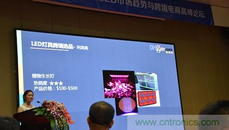 【導讀】周慧榮現場表示,敦煌網的數據顯示,2013-2014年海外買家對中國LED燈具采購快速增長,2015年上半年LED燈具海外采購總體增長開始放緩,但是LED燈具中的燈管、球泡、筒燈等受到海外買家歡迎,室內照明燈具、舞臺燈、植物生長燈等利潤高,隨著采購旺季到來,下半年增幅有望沖高。