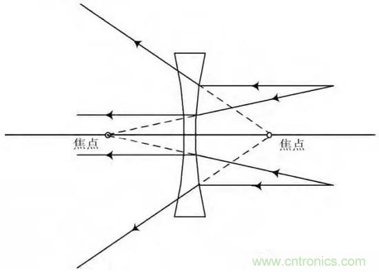 由于紫外光的散射傳播特性,UV LED的視場角和檢測器的視場角重疊的區域越大,接收到的光能量就越多,接收信噪比就越高。考慮到系統選用的UV?LED的視場角只有10°,為了增大收發雙方在存在視線遮擋情況下的重疊區域,需要通過光學透鏡增大發送光源的視場角。凹透鏡能夠對入射光束起發散作用,如圖2所示,所以通過多個凹透鏡的組合并調節UV?LED和凹透鏡的距離,就可以得到滿足要求的發射視場角。