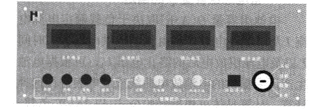 用數字面板表及及半導體節能燈人機接口單元組成具有人機操作顯示界面的監控系統,其功能為:充電板及電池電壓值、輸出電流值、輸入市電電壓值、輸出電壓值;電源起停操作;運行參數顯示;電源工作狀態顯示;故障狀態報警以及通過RS485和上位機通訊實現四遙功能,如圖2所示。
