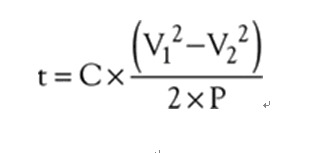 其中V1和V2分別為最初和最終的電壓,U為能量。另外,U=P×t,其中P為功率,t為時(shí)間。利用這些等式,可以求出設(shè)備保持正常工作的時(shí)間: