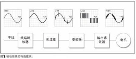 半導(dǎo)體元件的高頻開關(guān)會產(chǎn)生諧波、整流中斷和瞬態(tài)電壓峰值。它們給電力網(wǎng)絡(luò)帶來負(fù)面影響。除了相關(guān)EMC標(biāo)準(zhǔn)以外,電力主管部門還會施行進(jìn)一步的指令,把對電源網(wǎng)絡(luò)的干擾減弱到可容忍的程度。扼流器和線路濾波器可用于減弱干擾。除了線路端EMC保護(hù)以外,對變頻器輸出端也通常采用保護(hù)措施。目標(biāo)提高效率、延長工作壽命、實現(xiàn)高效布線。