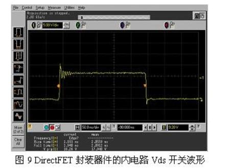 圖9示出的是DirectFETTM 器件對30A電流進行開關(guān)操作時的波形。