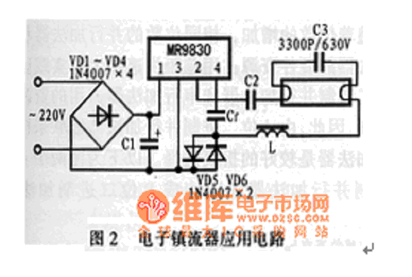 用MR9830組裝的電子鎮流器能可*地驅動40W以下功率的各種日光燈和節能燈。而且體積小,效率高,故障率極低,組裝工藝也非常簡單。圖2中的C1、C2、及Cf和電感L的參數可根據需推動日光燈管、節能燈管的功率不同而不同,具體的參數設置可參見表1。
