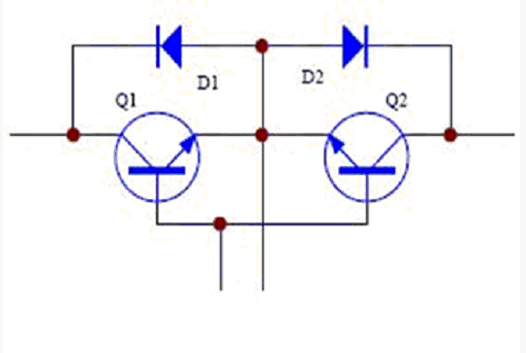 旁路開關(guān)常使用繼電器和可控硅。繼電器在中小功率的UPS 中廣泛應(yīng)用。優(yōu)點(diǎn)是控制簡單,成本低,缺點(diǎn)是繼電器有轉(zhuǎn)換時(shí)間,還有就是機(jī)電器件的壽命問題。可控硅常見于中大功率UPS 中。優(yōu)點(diǎn)是控制電流大,沒有切換時(shí)間。但缺點(diǎn)就是控制復(fù)雜,且由于可控硅的觸發(fā)工作特性,在觸發(fā)導(dǎo)通后要在反向偏置后才能關(guān)斷,這樣就會(huì)產(chǎn)生一個(gè)最大10ms的環(huán)流電流,如圖2。如果采用IGBT,如圖3,則可以避免這個(gè)問題,使用IGBT 有控制簡單的優(yōu)點(diǎn),但成本較高。其工作原理為:當(dāng)輸入為正半周時(shí),電流流經(jīng)Q1、D2,負(fù)半周時(shí)電流流經(jīng)D1、Q2。