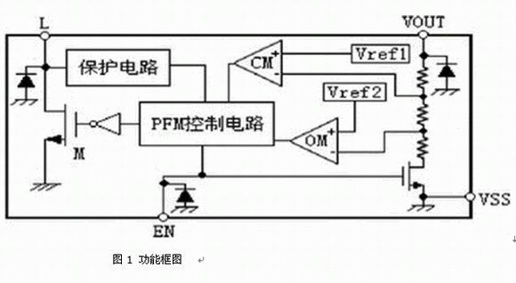 - 采用升壓型PFM控制DC/DC轉換器,結構簡單、功能完備、輸出精度高、功耗低