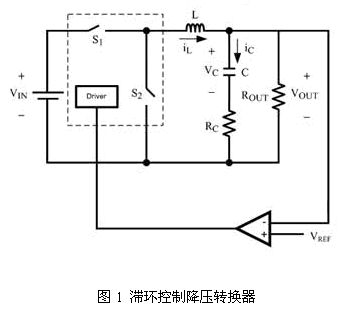 根據(jù)可變結構控制理論來分析滯環(huán)控制降壓轉換器,得出輸出電壓紋波的增加和相移是由于輸出電容器的過小ESR所致。這也解釋了為何ESR較小的陶瓷電容器通常都不會使用在滯環(huán)控制降壓轉換器上。