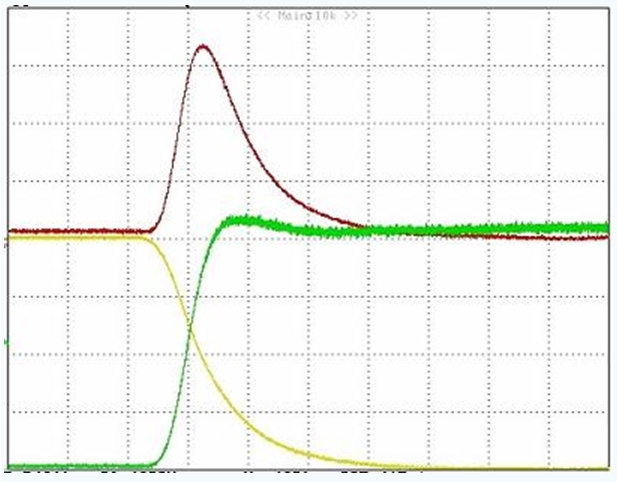 下圖是MOS管導通時的波形??梢钥闯?,導通瞬間電壓和電流的乘積很大,造成的損失也就很大。降低開關時間,可以減小每次導通時的損失;降低開關頻率,可以減小單位時間內的開關次數。這兩種辦法都可以減小開關損失。
