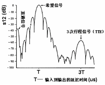 圖2是橫向SAW 濾波器的典型脈沖響應,圖3 是同一只SAW 濾波器不同安裝引起直通信號抑制不同,得到的濾波效果也完全不同。