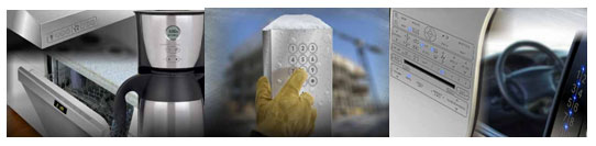 作為傳統(tǒng)按鈕式用戶界面的一種替代方案,觸摸傳感不僅可以提高可靠性并降低系統(tǒng)總成本,還有助于實現(xiàn)完全密封和富于現(xiàn)代感的設(shè)計。如下圖所示,電感式觸摸傳感用戶界面的主要應(yīng)用領(lǐng)域包括可能需要采用不銹鋼面板的家電市場;需要技術(shù)上持久耐用性的工業(yè)市場;以及需要技術(shù)上有流線感又要減少意外接碰而引起的觸發(fā)的汽車市場。