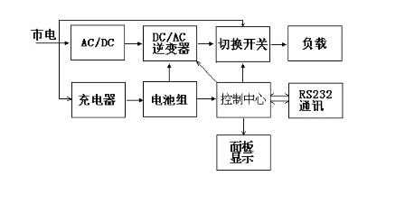 圖1 為在線式UPS 的主電路,在線式UPS 電源具有獨立的旁路開關(guān)、AC/DC 整流器、充電器、DC/AC 逆變器等系統(tǒng),工作原理是:市電正常時AC/DC 整流器將交流電整流成直流電,同時對蓄電池進(jìn)行充電,再經(jīng)DC/AC 逆變器將直流電逆變?yōu)闃?biāo)準(zhǔn)正弦波交流電,市電異常時,電池對逆變器供電,在UPS 發(fā)生故障時將輸出轉(zhuǎn)為旁路供電。在線式UPS輸出的電壓和頻率最為穩(wěn)定,能為用戶提供真正高質(zhì)量的正弦波電源。