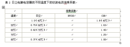 電解電容器的主要參數在不同溫度下的紋波電流倍乘系數如表2