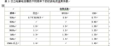 電解電容器的主要參數在不同頻率下的紋波電流倍乘系數如表3