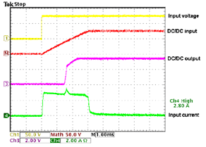 圖4. 通信系統在標稱輸入電壓和最大輸出負載時的沖擊電流限值(DC/DC電源)