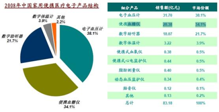 - 2008年國內便攜式醫療電子產品市場的總量達到127億的規模