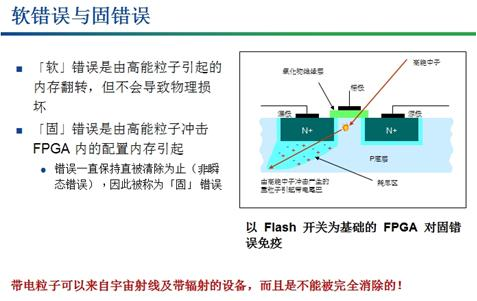 他指出對于Flash工藝器件來說,它對固錯誤有免疫性,因為Flash晶體管不會隨意翻轉,雖然有瞬態翻轉,但瞬態過了以后會恢復生產。